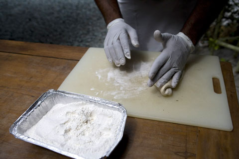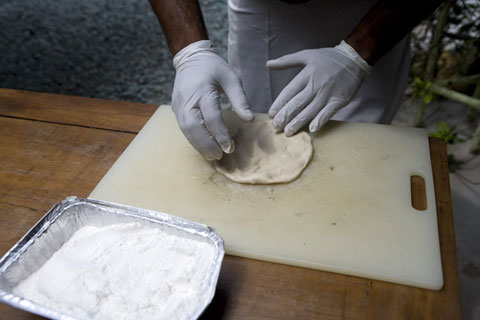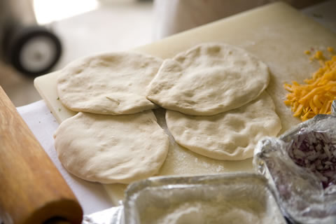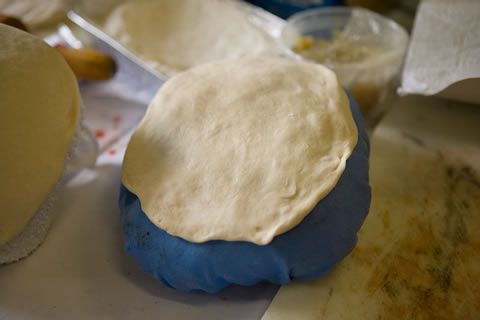 1) Sprinkle a little flour on your work space and begin to knead the dough.