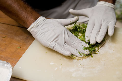 11) Remove parsley naans from the oven first so the greens don’t burn.